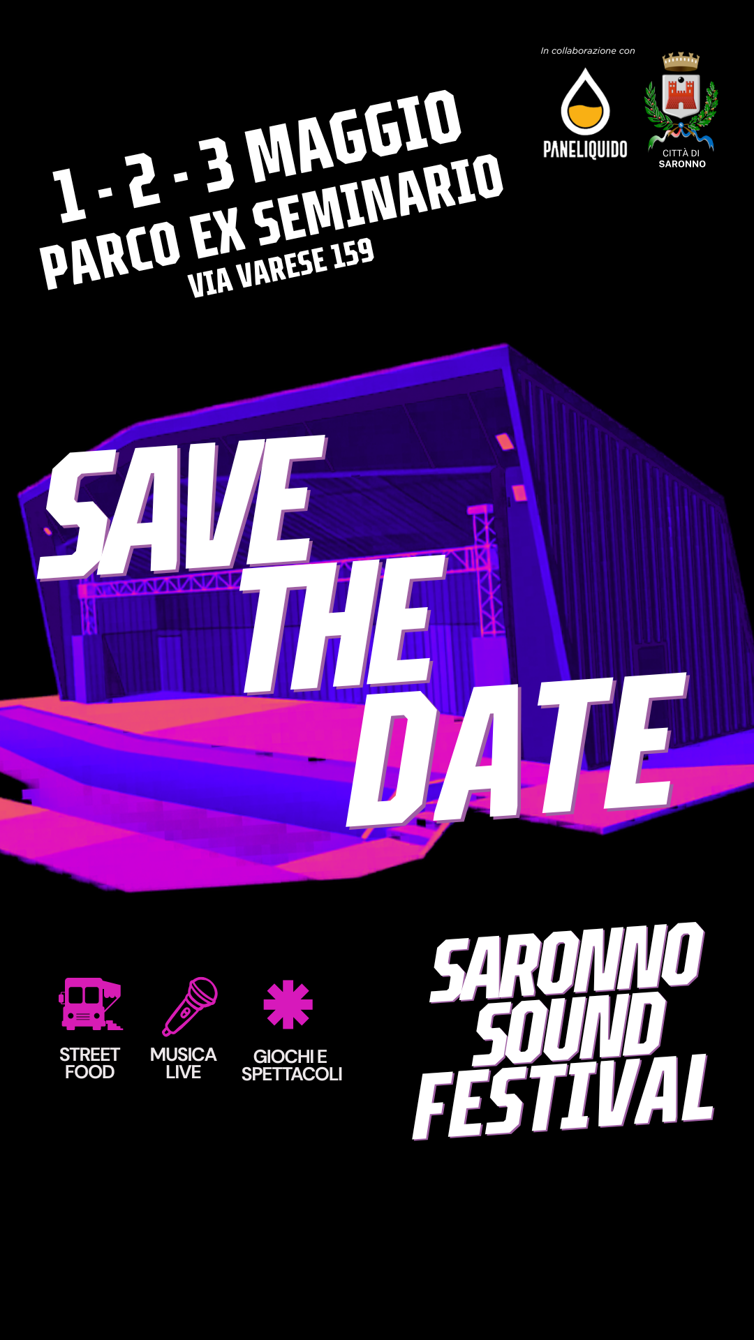 🗓️ Venerdì 1 (dalle 18 all’1), sabato 2 (dalle 18 all’1) e domenica 3 maggio (dalle 16 alle 22) il Comune di Saronno, in collaborazione con Paneliquido, organizza la prima edizione di Saronno Sound Festival, un week-end dedicato alla musica dal vivo, accompagnata dalla birra artigianale e dallo street-food.